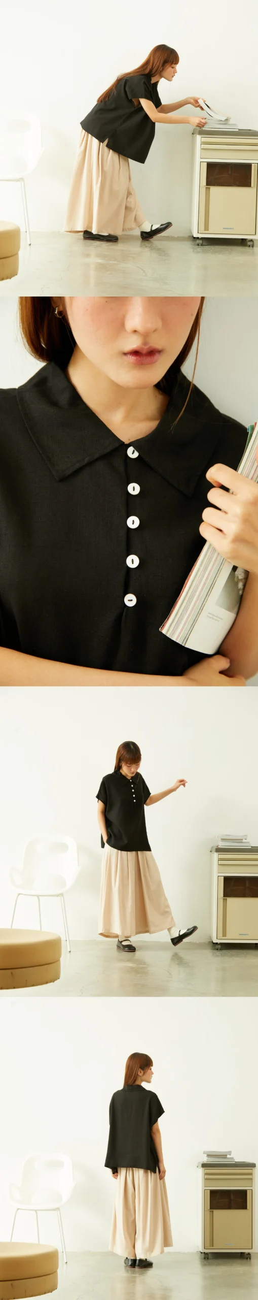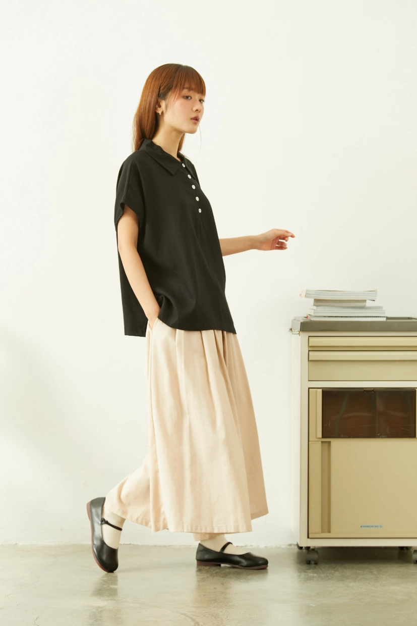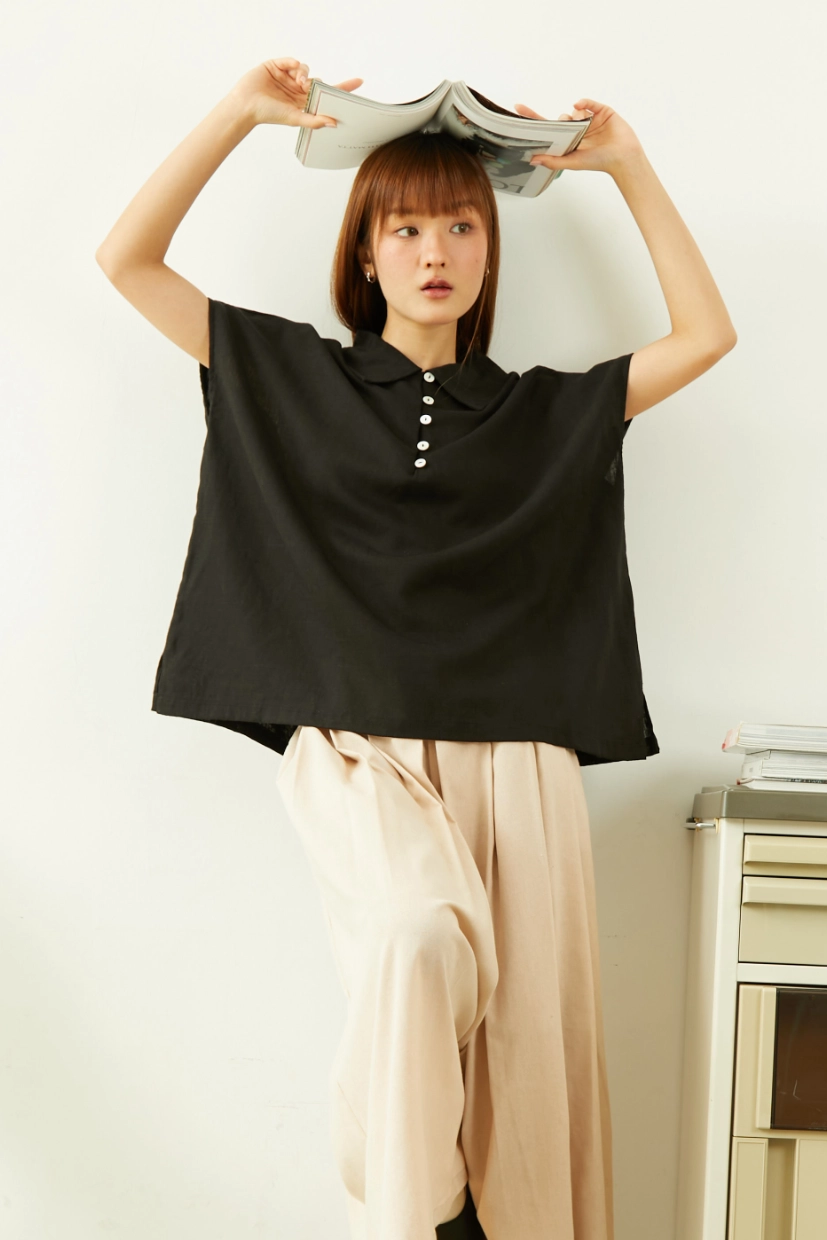 Linen Peter Pan Collars Polo Blouse – Black