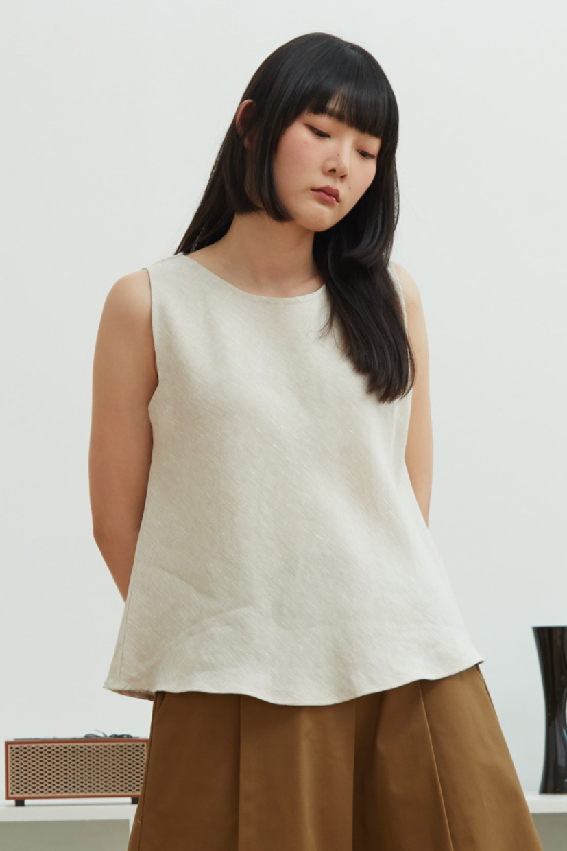 Square Sleeveless Linen Blouse – Natural